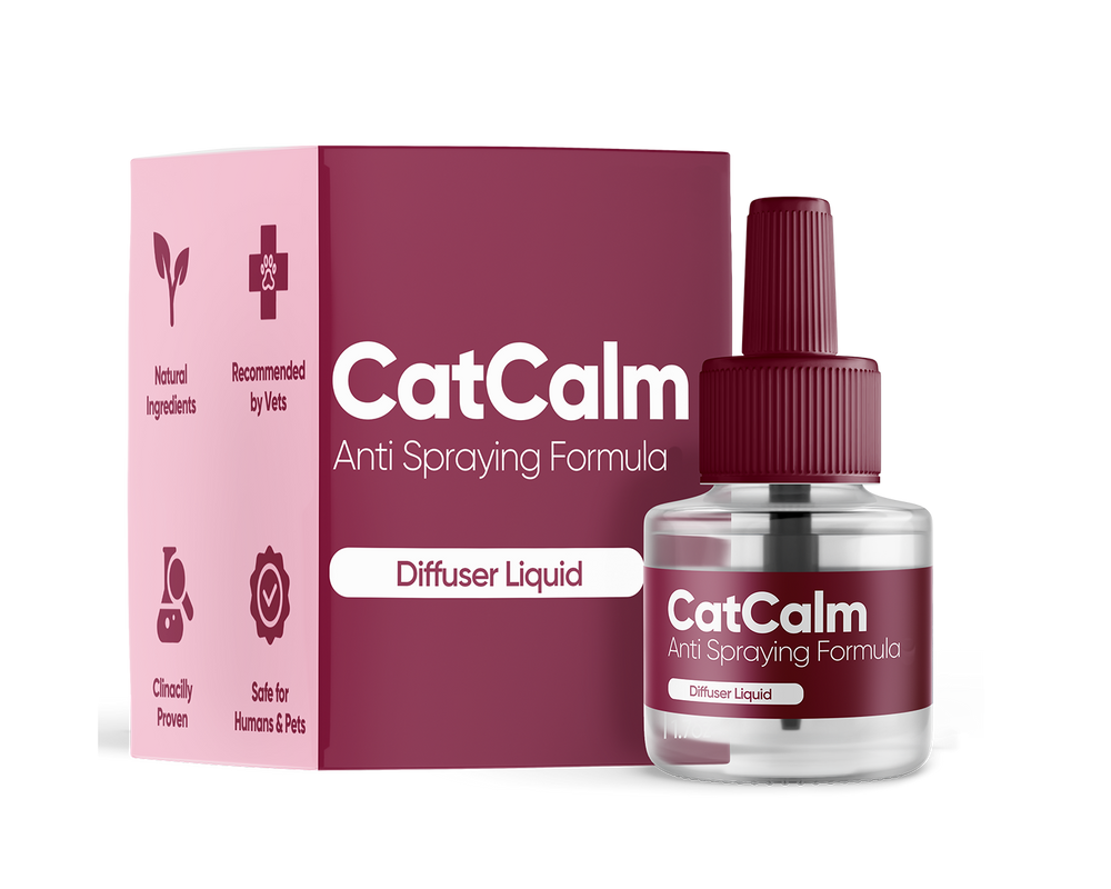 CatCalm Anti Spraying Formula uses natural pheromones to restore proper litter box behavior in cats. It's designed for cats that urinate or spray outside their litter box, helping them return to their natural instinct of using the box. Within just 3 days, cats begin to change their marking behavior and return to proper litter box use.
