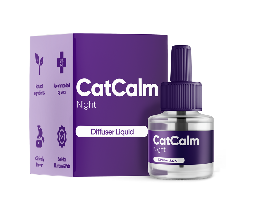 CatCalm Night helps cats adjust to their owners' sleep schedule using natural pheromones. It's designed for cats that are overactive at night, reducing behaviors like midnight running, meowing, and demanding attention during sleep hours. Within just 3 days, cats begin to naturally calm down at night, allowing both cats and their owners to get peaceful sleep.