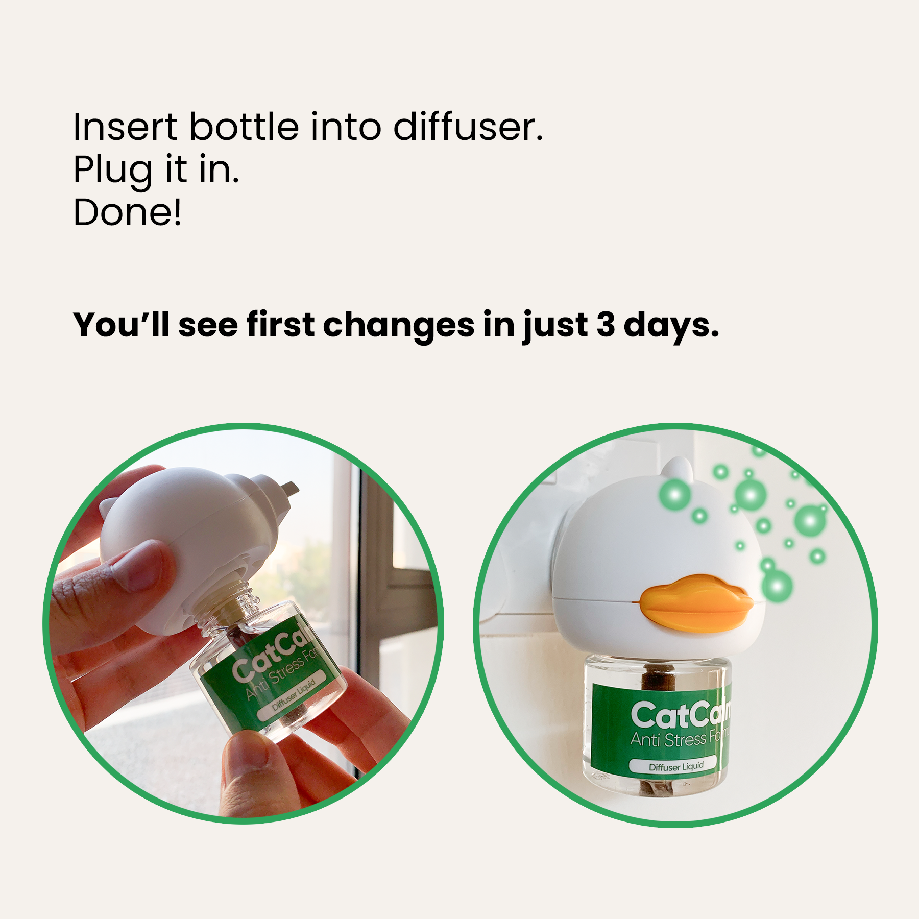 Plug the diffuser with CatCalm bottle into an outlet